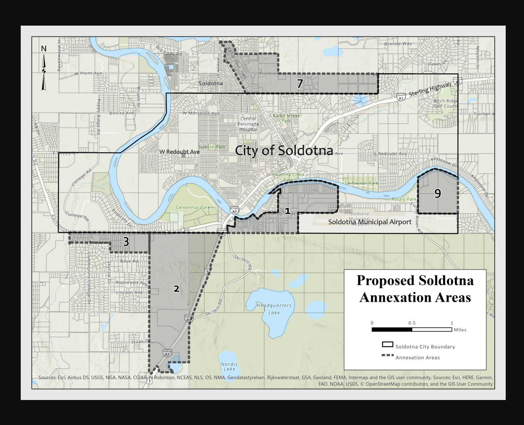 After repeated studies and hearings, the Soldotna City Council proposed adding 2.63 square miles to the city. The new territory includes the city water source, the local high school and an extensive trail network.