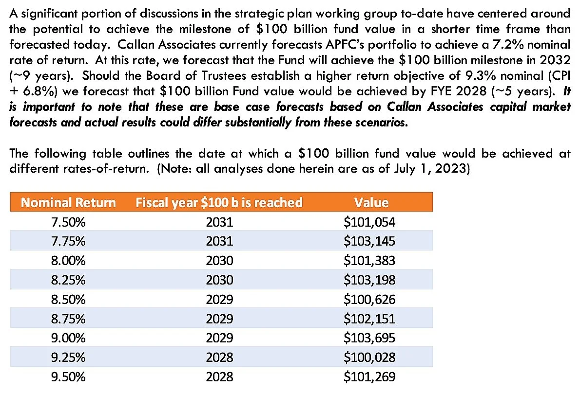 The Permanent Fund has posted this package of documents online about what it might mean to pursue riskier investments and try to accelerate the growth of the $74 billon fund into a $100 billion fund.