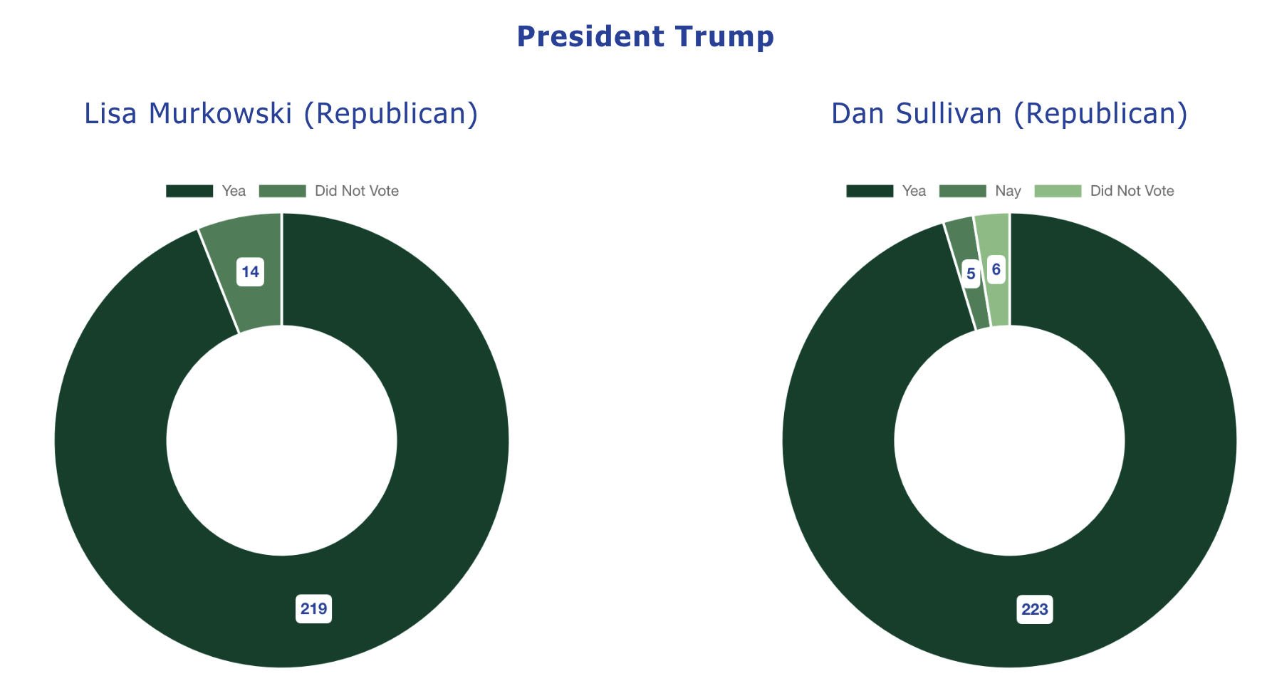 Sullivan voted against 217 Biden nominees, while Murkowski opposed 58. Both senators voted for nearly every Trump nominee the last time he was president.