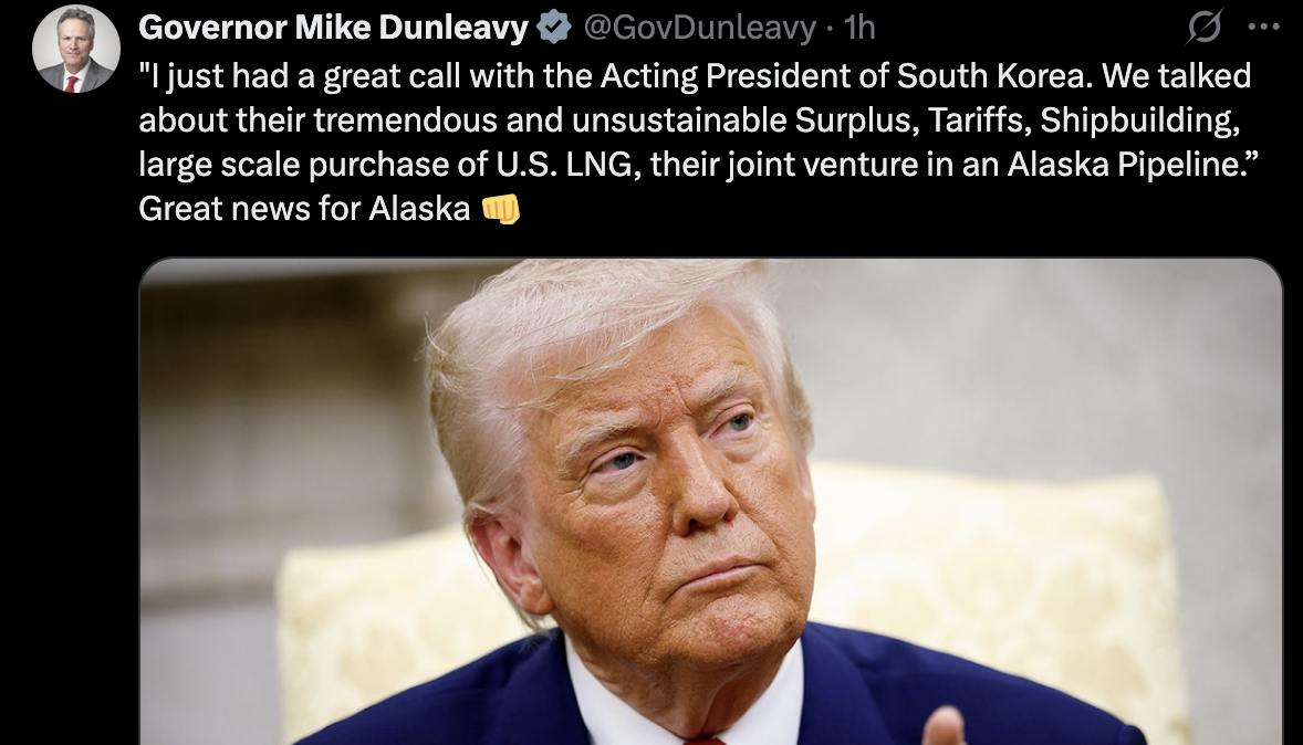 And yes, this is supposed to get the Alaska LNG project built, according to Dunleavy and the others who have proclaimed that this is Trump’s Golden Age of Alaska.