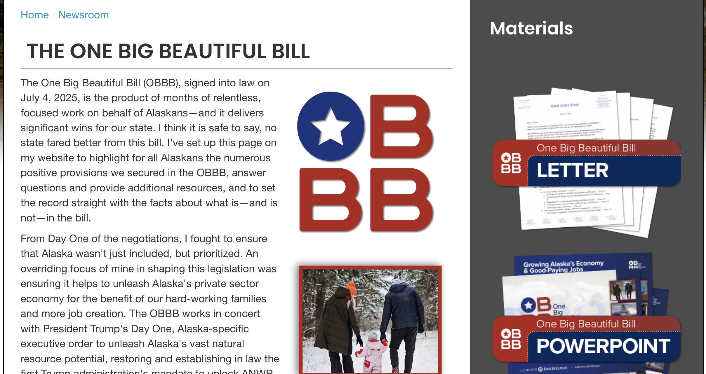 “The One Big Beautiful Bill (OBBB) is one of the most transformative pieces of legislation for Alaska in decades,” Sullivan said in a press release sent out in early July.