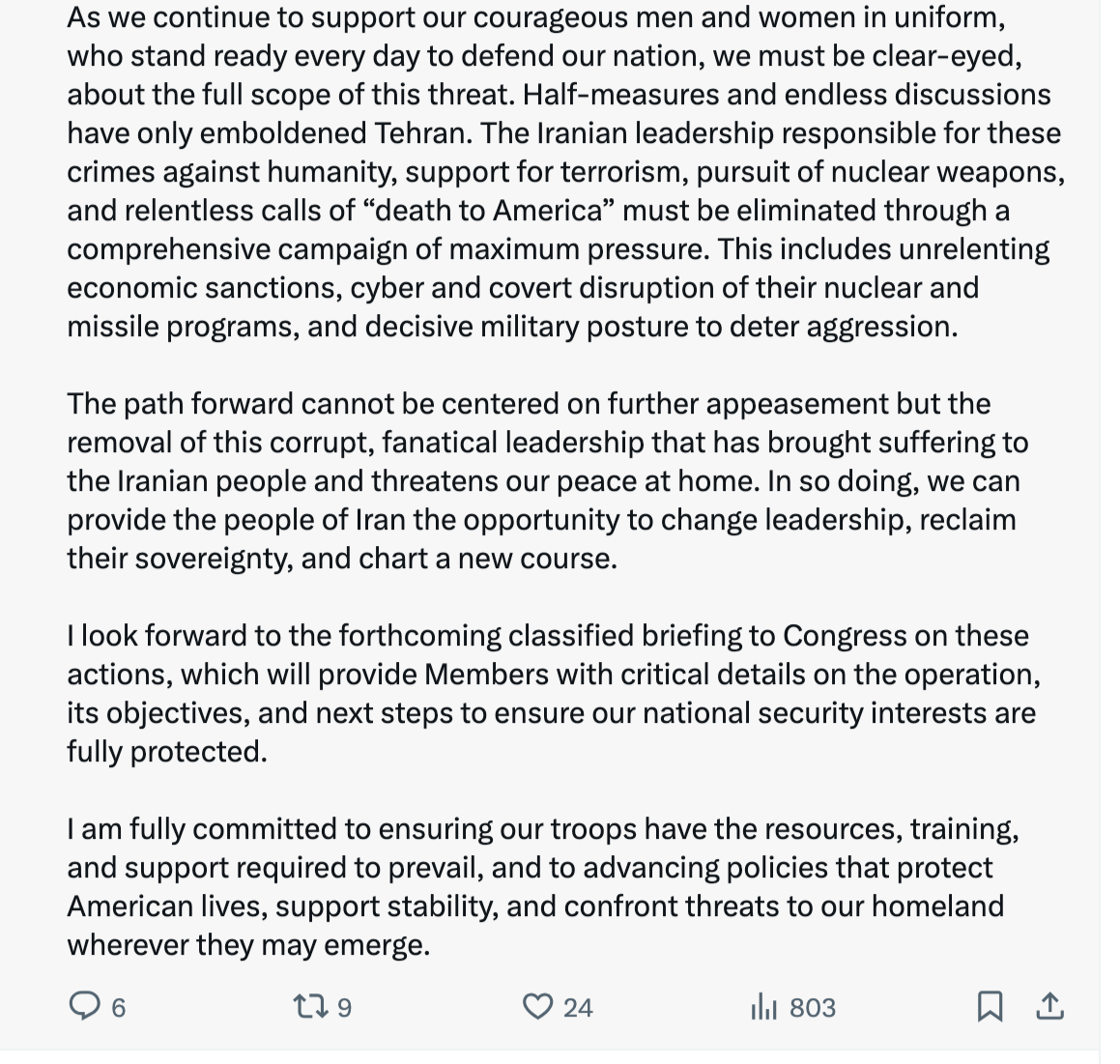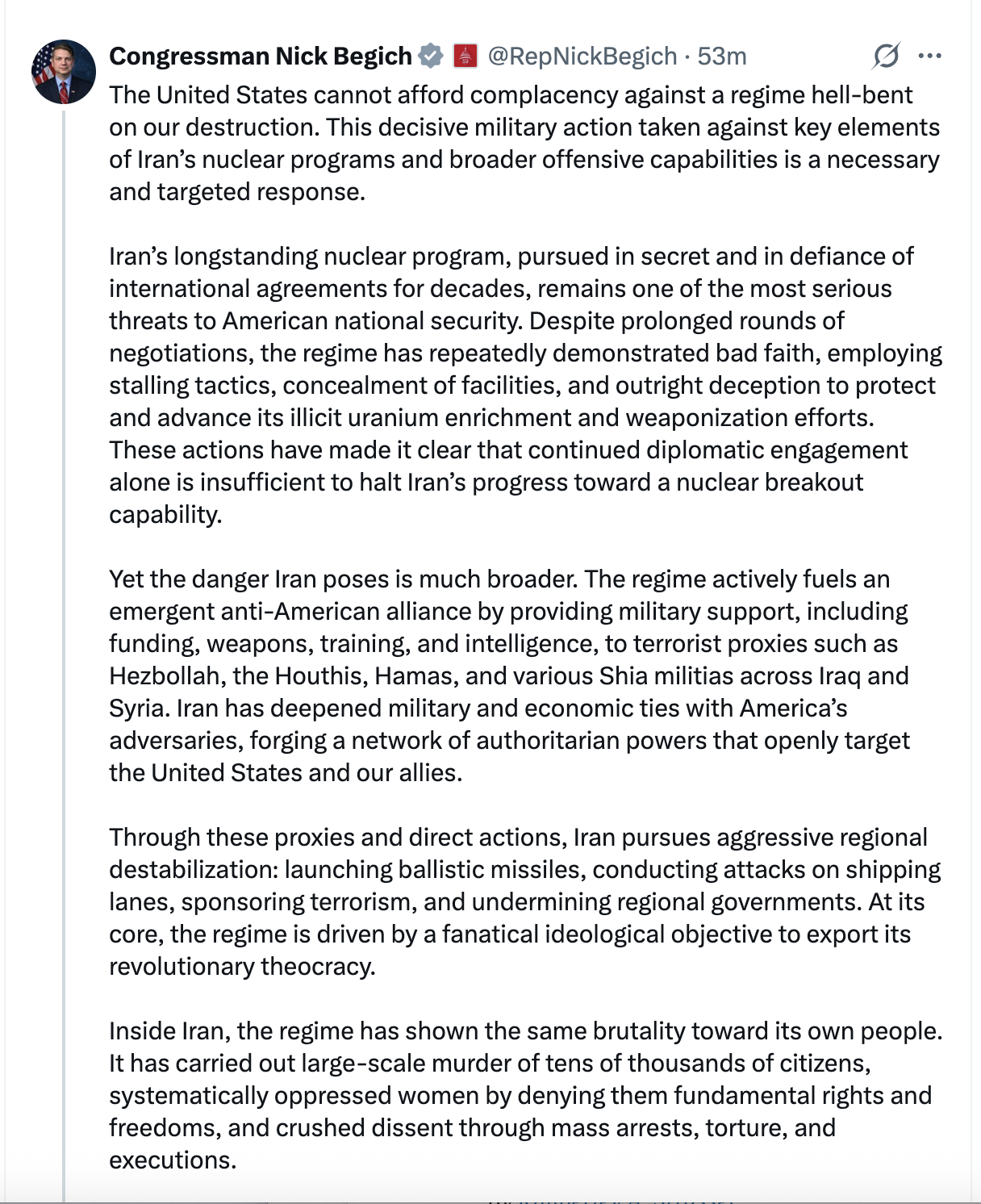 “His pretaped video, released in the middle of the night as the missiles started exploding in Tehran, recited a list of long-running grievances with Iran, including its brutal use of terror. But he never explained why in the pantheon of threats facing the United States, including an already-nuclear-armed North Korea and the expanding nuclear arsenals and territorial ambitions of Russia and China, a weakened Iran ranks first,” Sanger wrote.